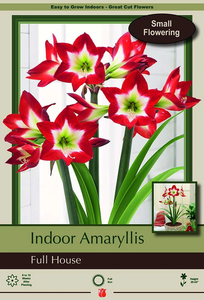 Full House is not only a specialty amaryllis bred to open more flowers, it also has a magnificent new design. Note the clear, clean white star center. A real beauty.