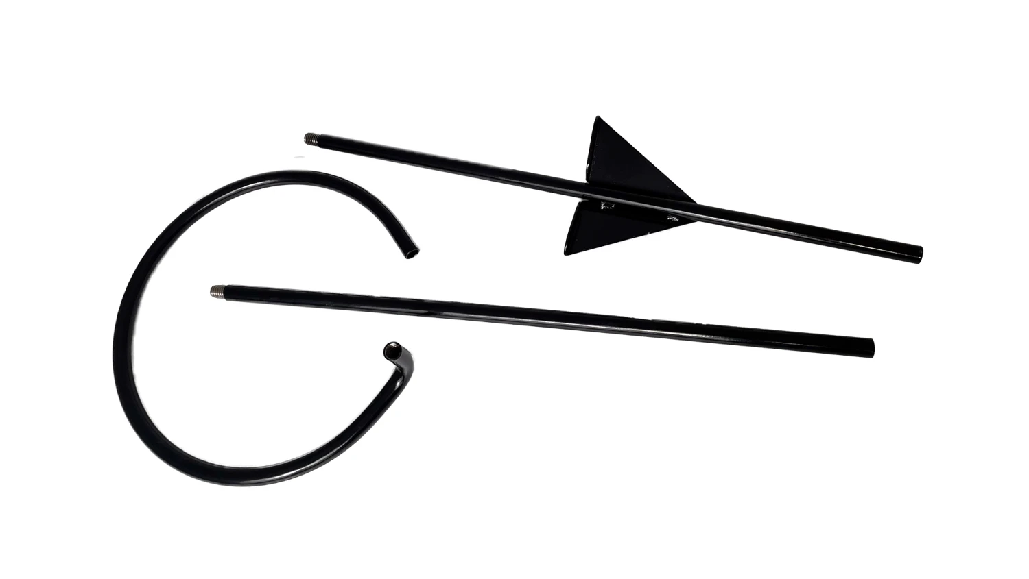 Anti-tip foot spade resists tipping and leaning. Assembles in 30 seconds~ No Tools Required. 3 pieces, easily screw threaded ends together. Gloss Black Paint coating will fade to a flat black color over time. Patent US 11,346,494