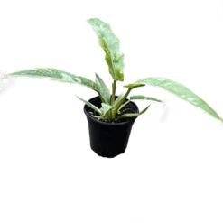 The Variegated Hindu Rope Plant is an exotic house plant native to the far east. It is rather easy to grow and can reach lengths of over 8 feet! The plant is easy to grow. It does best in a filtered light window and watered when dry. The plant prefers to be pot bound. The plant has thick, convoluted, green, pink, and white leaves, arranged on trailing, twisted stems. Small, white, waxy flowers have red centers and are very fragrant. It is related to the Wax Plant. Proper name: Hoya carnosa compacta variegated. The plant you will receive is growing in a 4″ pot and the vines are between 3″ and 6″ long. It is similar to the top picture.